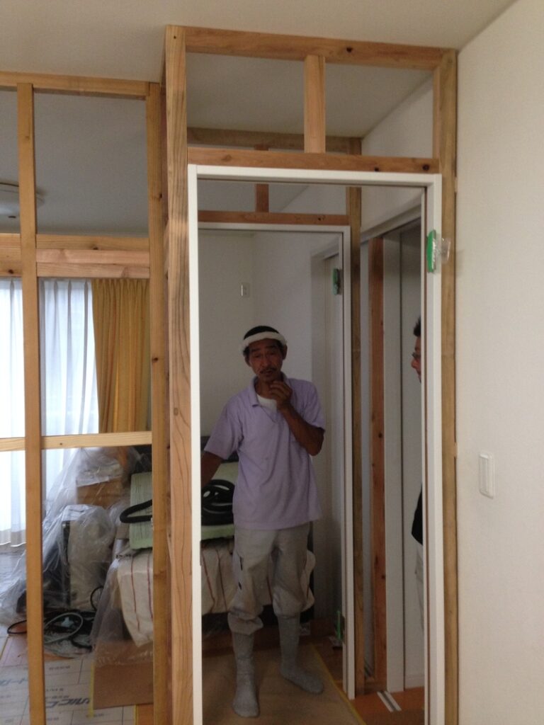 出入り口がもともと1つだけだったので仕切りの壁だけでなく、新たに2つ扉をつけました。