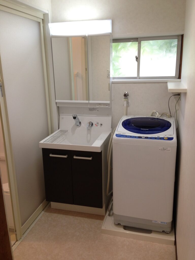 洗面台を置きました。脱衣所は広々となり快適です。